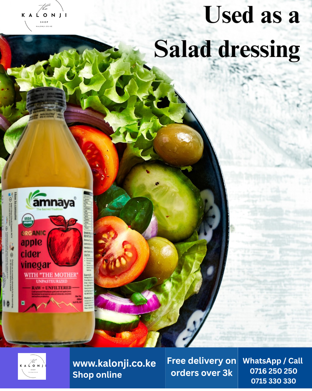 Amnaya presents Organic Apple Cider Vinegar (ACV), made from naturally fermented organic apple juice. Promotes gut health and overall wellness.