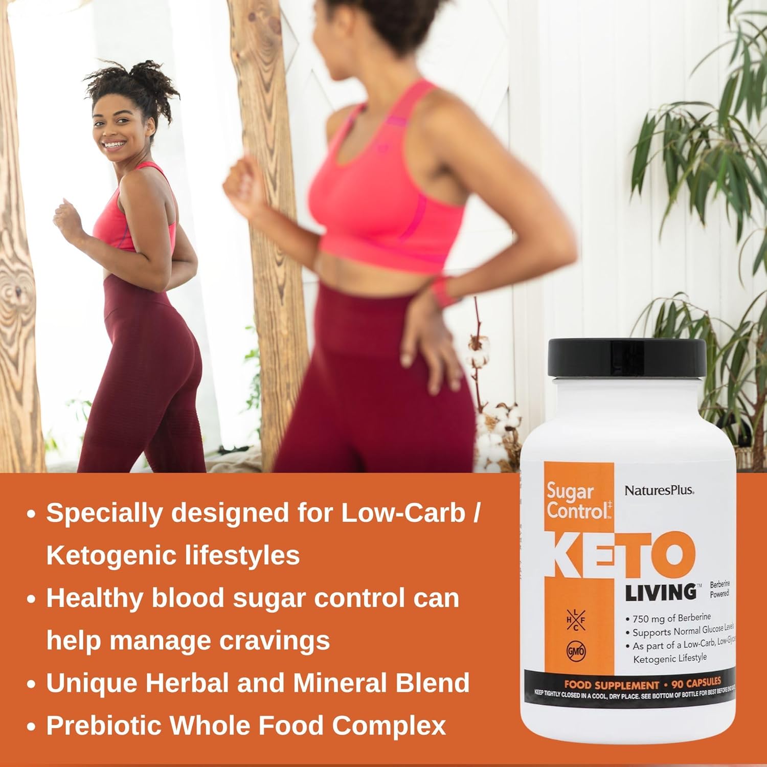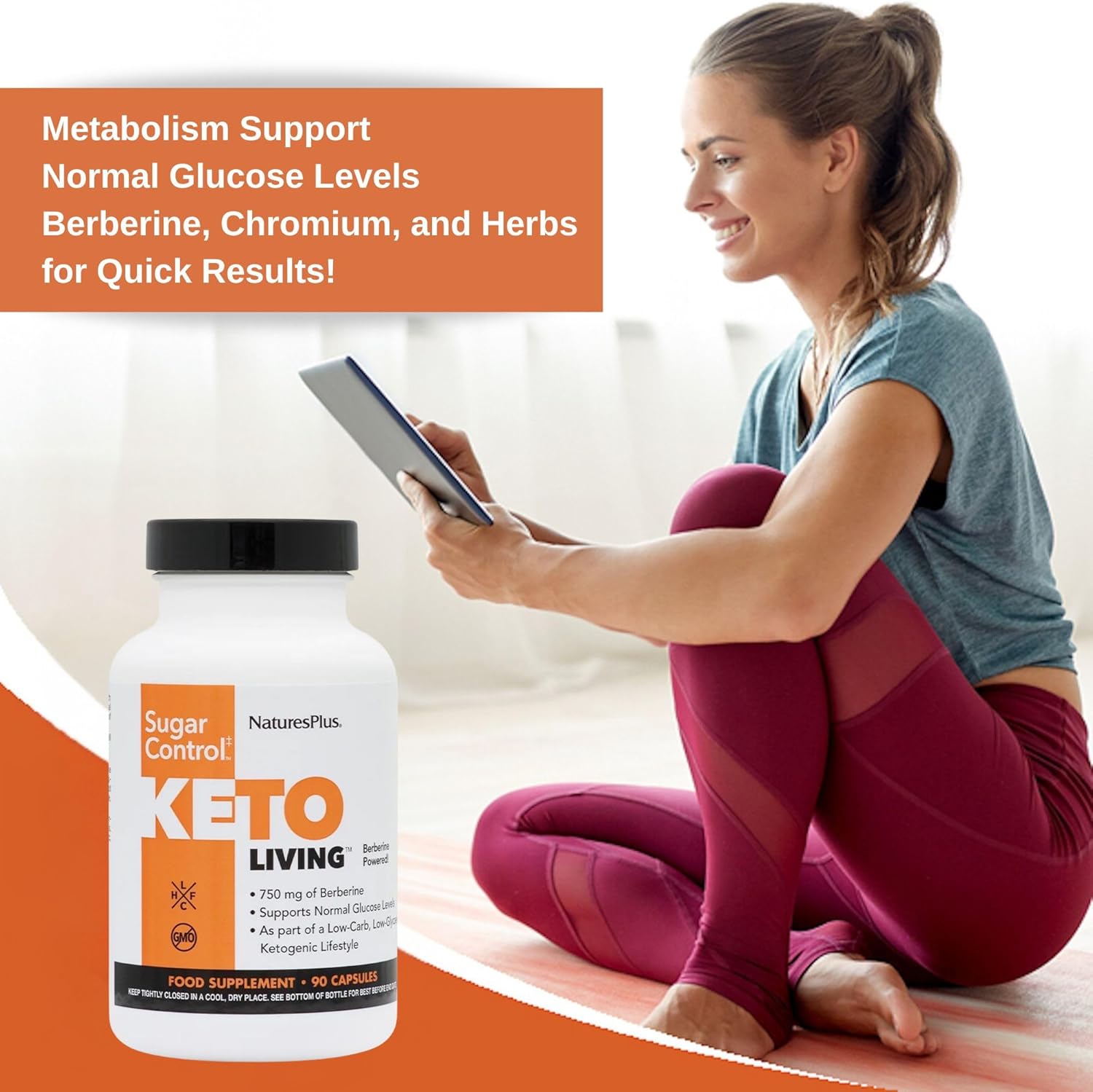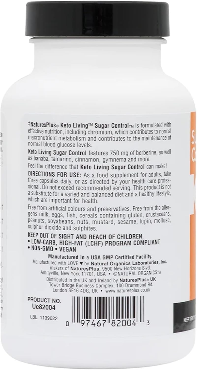 NaturesPlus Keto Living Sugar Control -Berberine Supplement, Chromium Picolinate, Cinnamon, Herbs - Blood Sugar Control, Metabolism Booster - Gluten Free, Vegan - Capsules