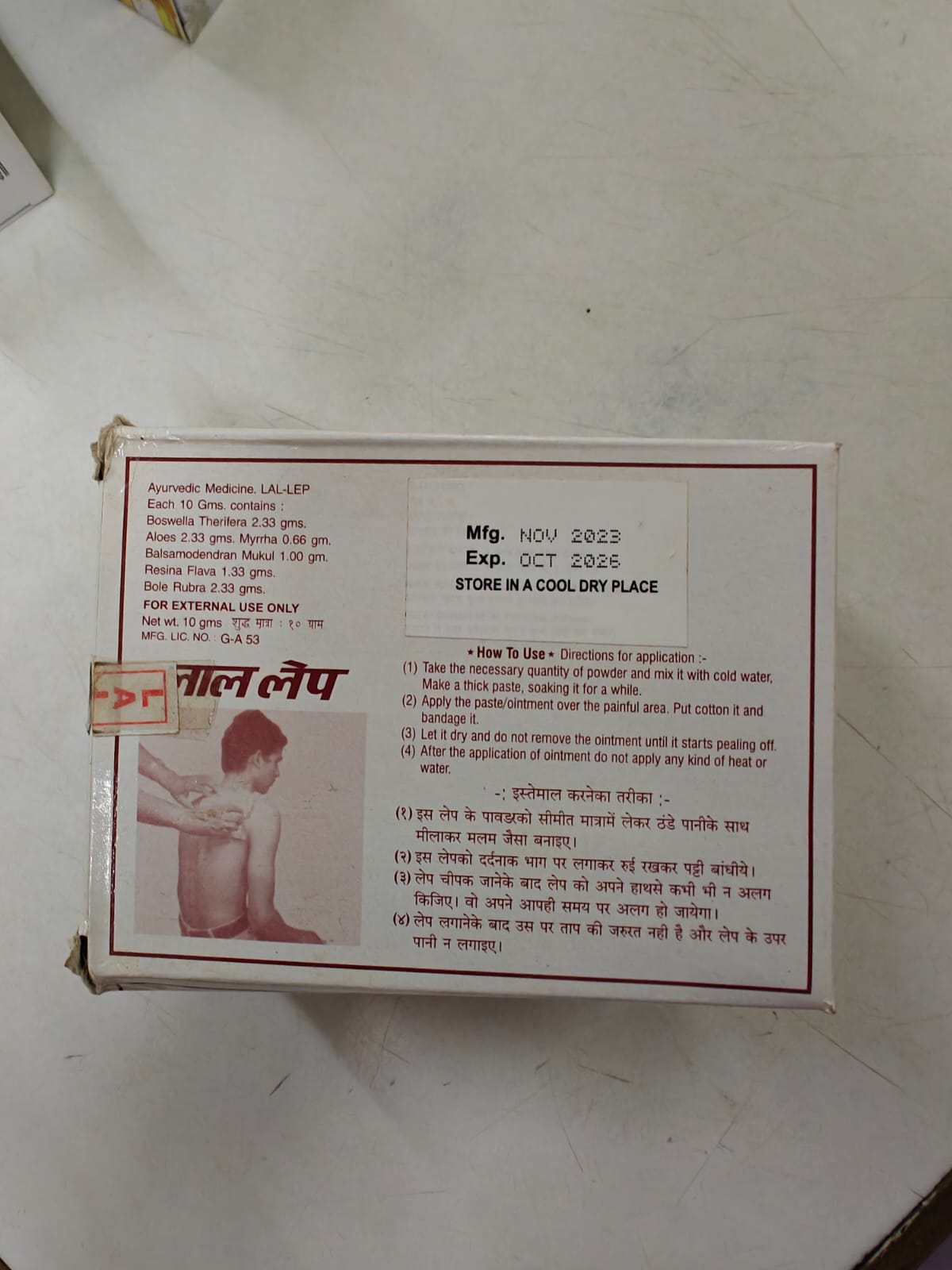 "Lal lep" generally refers to herbal paste or balm used in Ayurvedic medicine for various skin conditions and pain relief. It can help with skin diseases like eczema, minor wounds, and manage symptoms like fever, headaches, and inflammation. Some formulations are also used for muscle and joint pain, and even for respiratory issues.