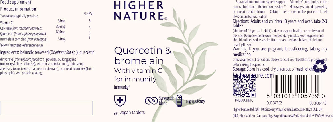 Higher Nature Quercetin + Bromelain+ Vitamin C Description