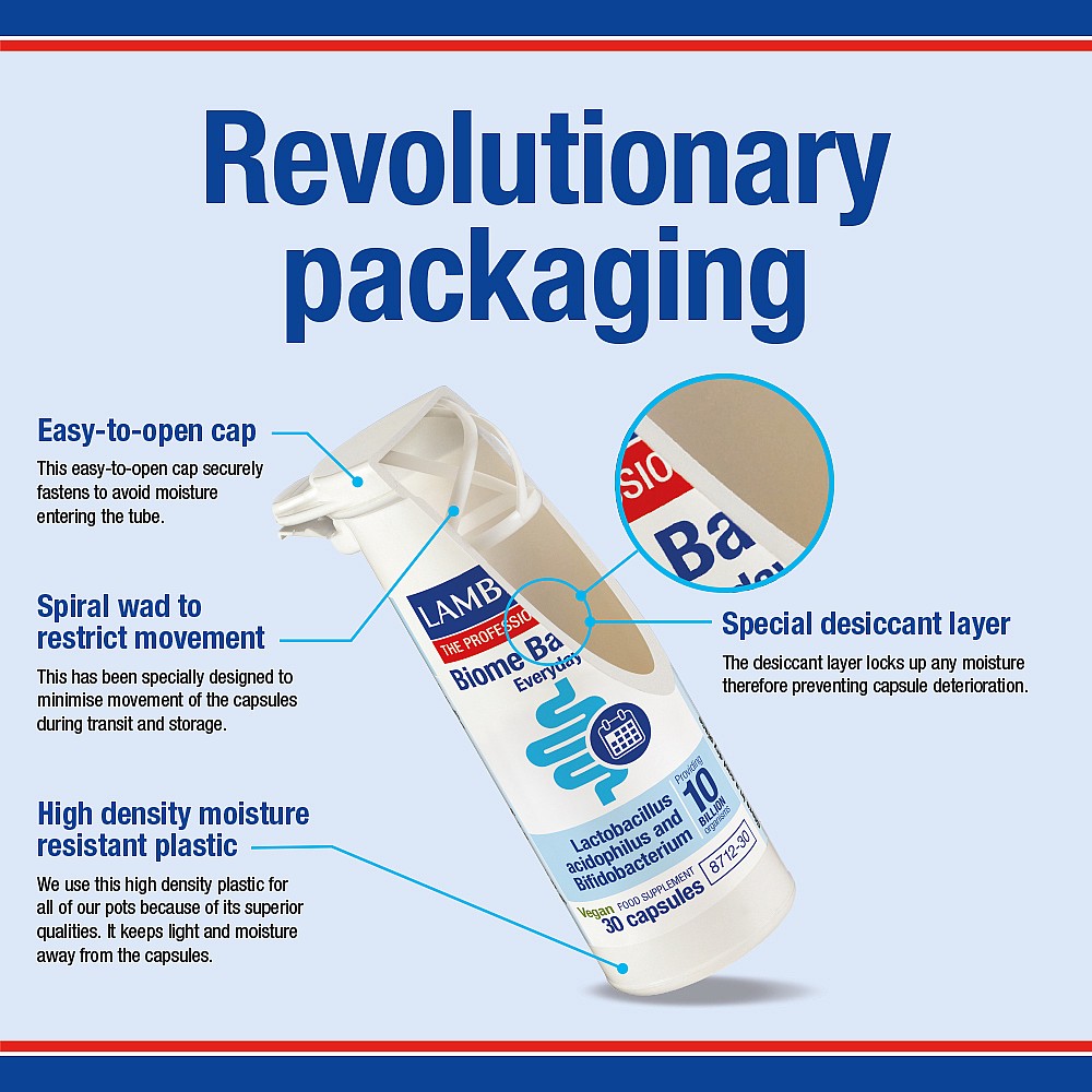 - Supplied in special dessicant packaging to maintain potency and protect the delicate bacteria from moisture