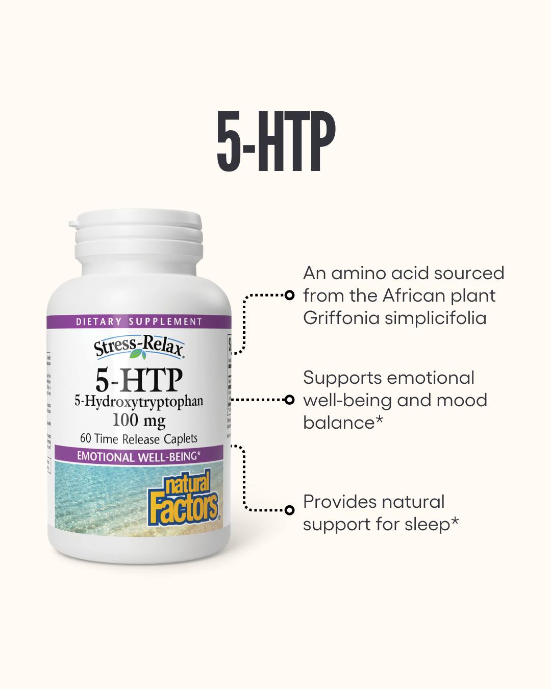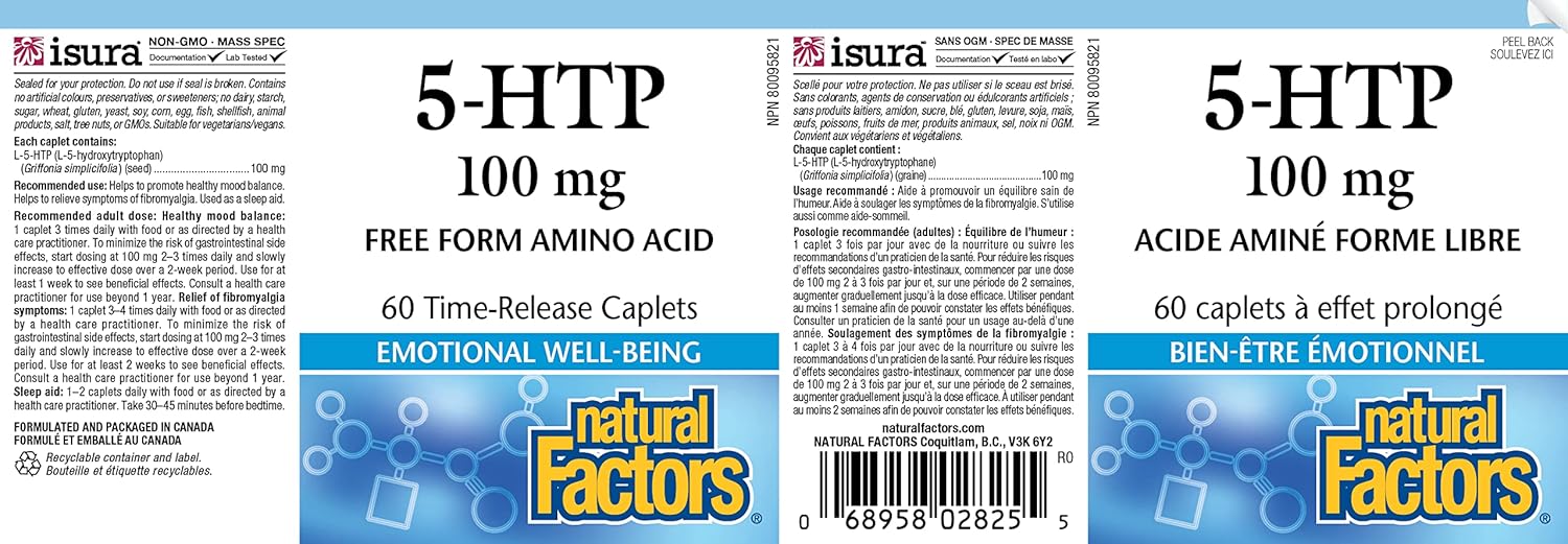 5-HTP is an intermediate metabolite between L-tryptophan and serotonin. Supplementing with 5-HTP provides natural support for sleep and emotional well-being.* Timed-release caplets minimize gastric discomfort and optimize absorption. Natural Factors amino acids are the highest-quality pharmaceutical-grade products available.