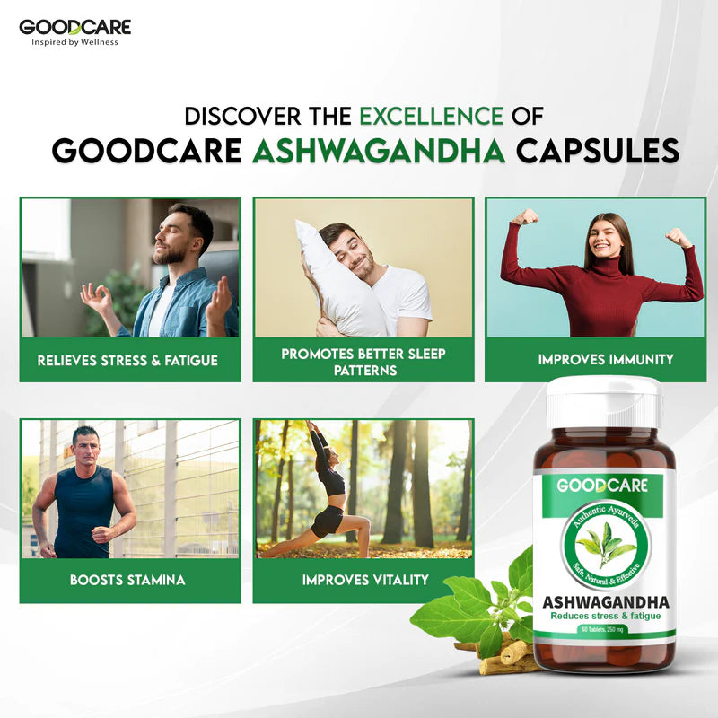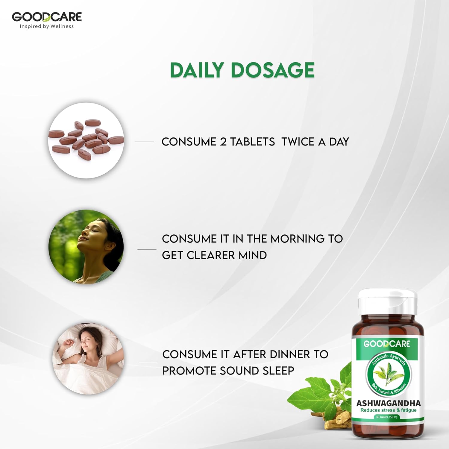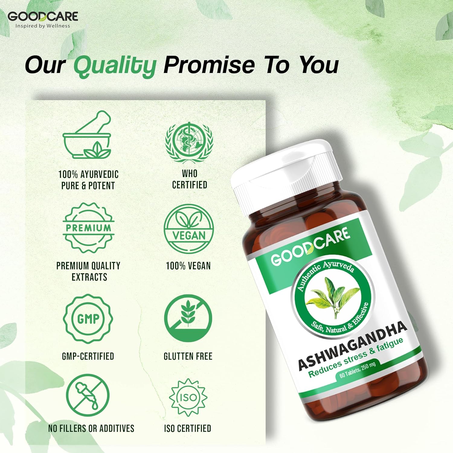 Goodcare Ashwagandha Tablets | Ayurvedic Stress & Sleep Support | Boosts Energy & Immunity | Reduces Fatigue | Rich in Antioxidants