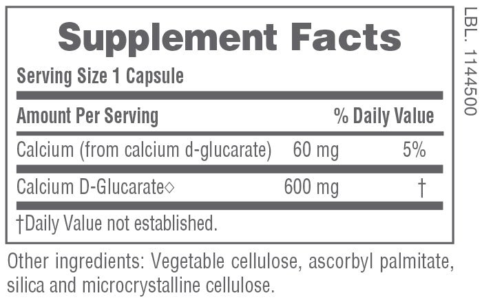 Note: NaturesPlus PRO Calcium D-Glucarate is not intended or designed as a calcium supplement. Oral supplementation of this complex is a great way to promote its active metabolite, D-glucaro-1, 4-lactone, in the body.