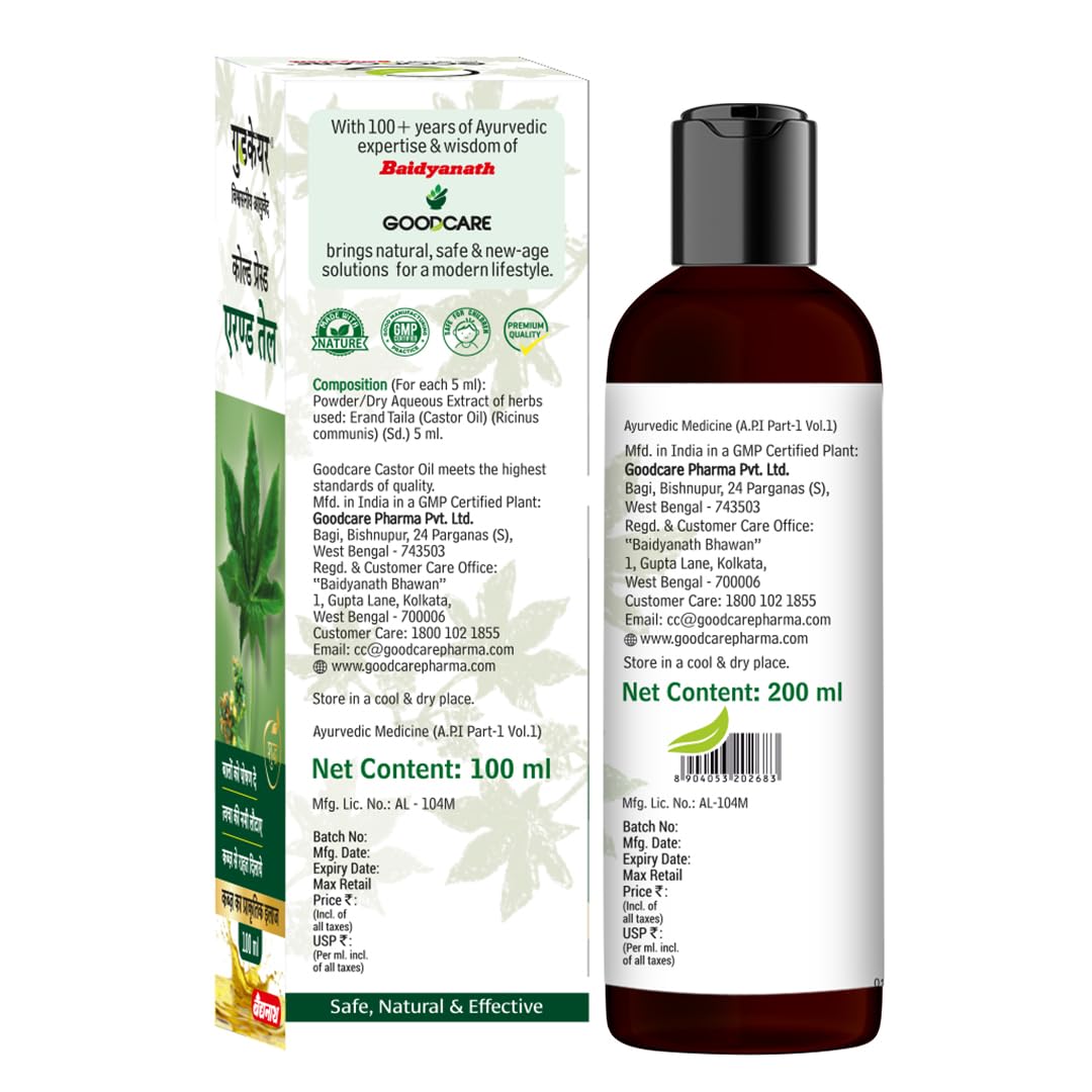 Nothing works quite like Goodcare Cold Pressed Hexane-freeCastor Oil. It works as a natural laxative & a multipurpose wonder. Thick and rich in texture, it deeply hydrates and locks in moisture—nourishing your skin, hair, nails, and cuticles for lasting softness and care.Pregnant women and children can safely use it as a laxative. It also helps relieve muscle strains and inflammation.