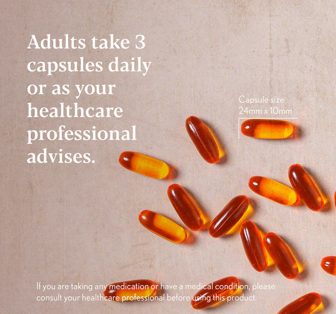 Omega 3s (DHA & EPA) from sustainably sourced fish oil in their naturally superior triglyceride form to nourish skin, optimise cognitive function, fight inflammation and support heart health.