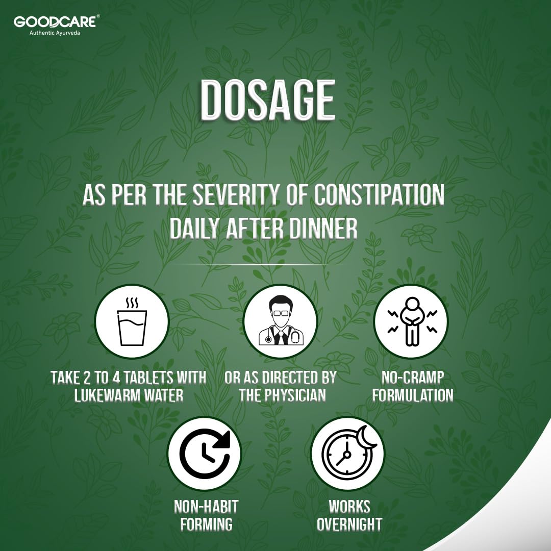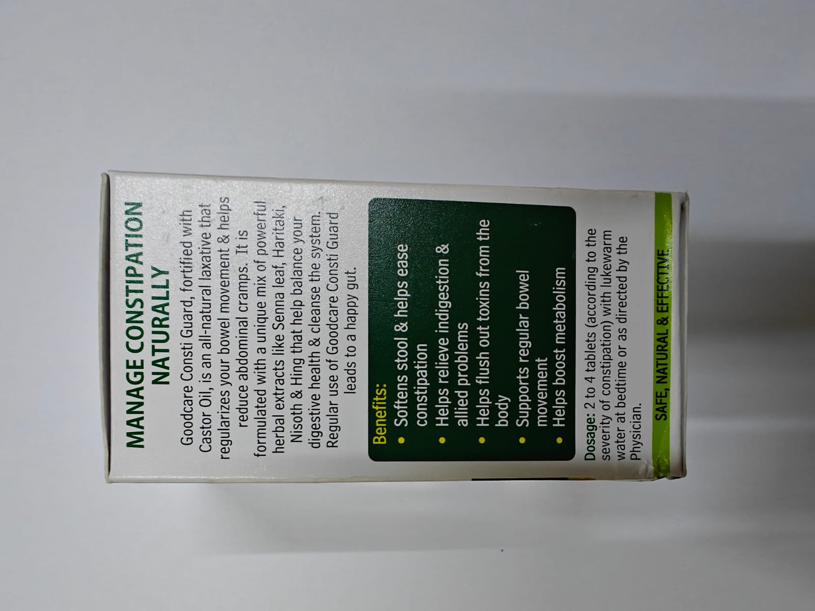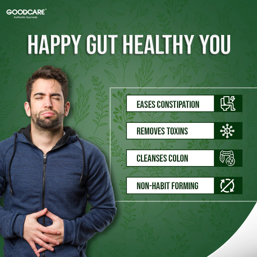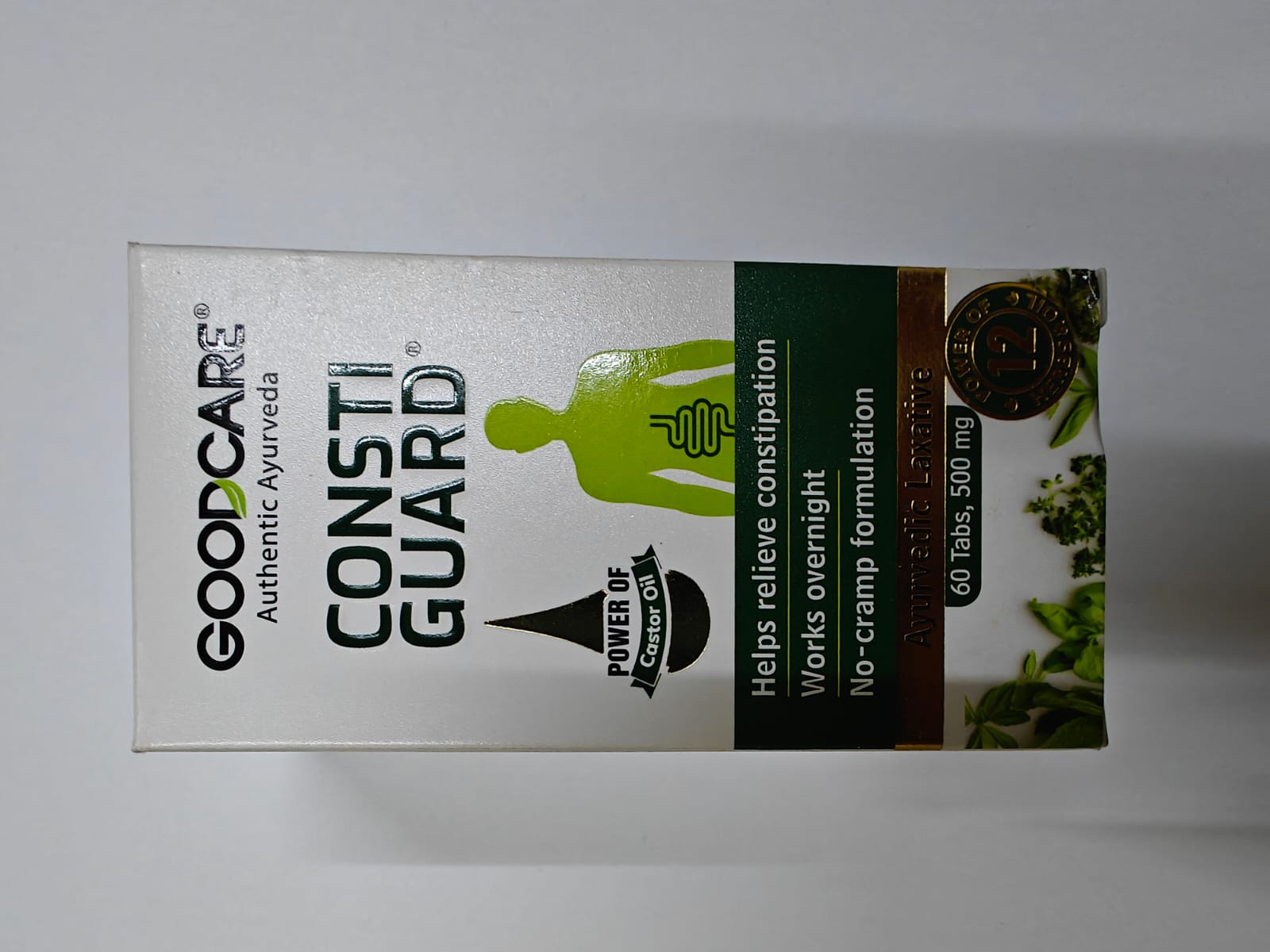 Goodcare ConstiGuard tablets are fortified with the power of Castor Oil, GoodcareConsti Guard is a natural laxative that provides relief from constipation & helps regularize your bowel movement. Formulated with a unique mix of 12 powerful herbal extracts like Senna leaf, Haritaki, Nisoth& Hing, it not only helps cleanse the digestive system, but also relieves gas, indigestion, abdominal pain & allied problems. It is a no-cramp gut detox formula that works overnight.