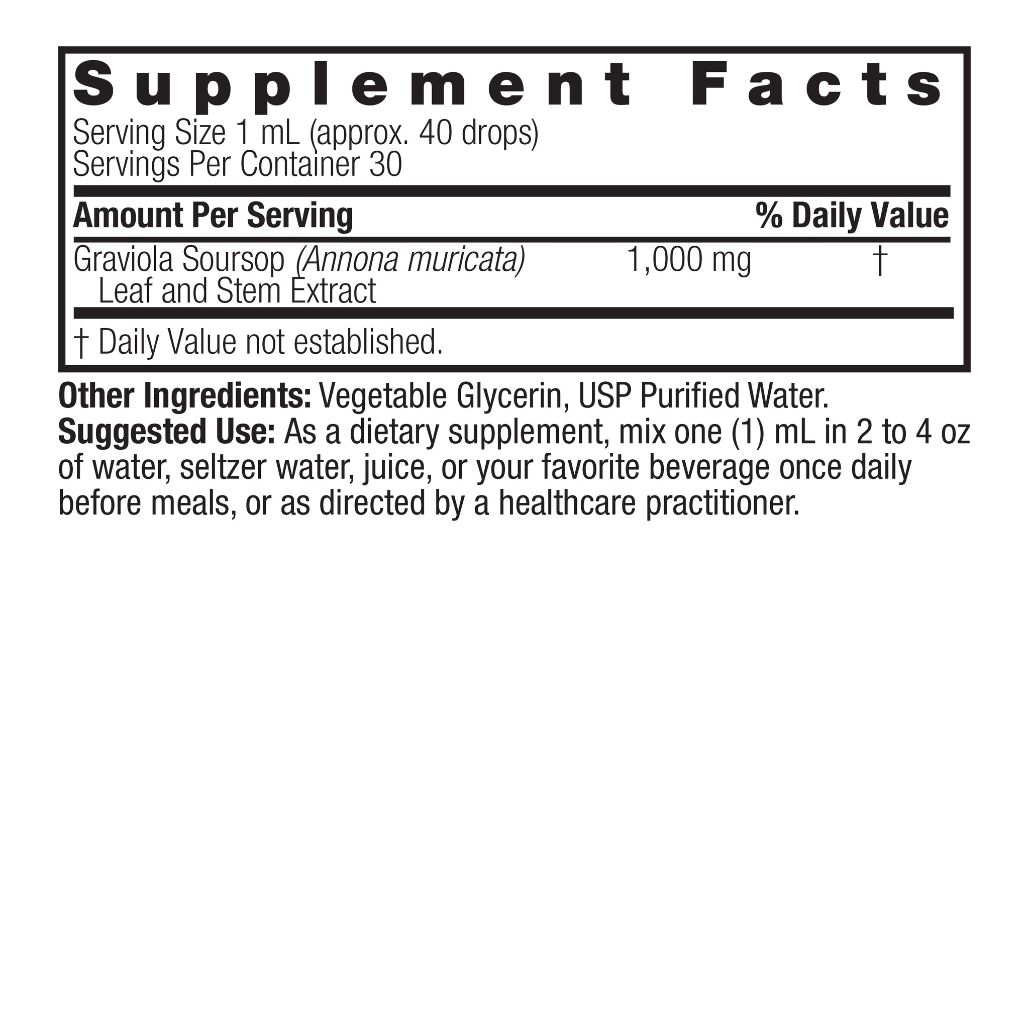 of each plant. Our Alcohol-Free Graviola Soursop is a highly concentrated herbal extract. Each 1 ml serving delivers the equivalent of 1000 mg of dried herb, providing the traditional benefits of this time-tested plant/herb.