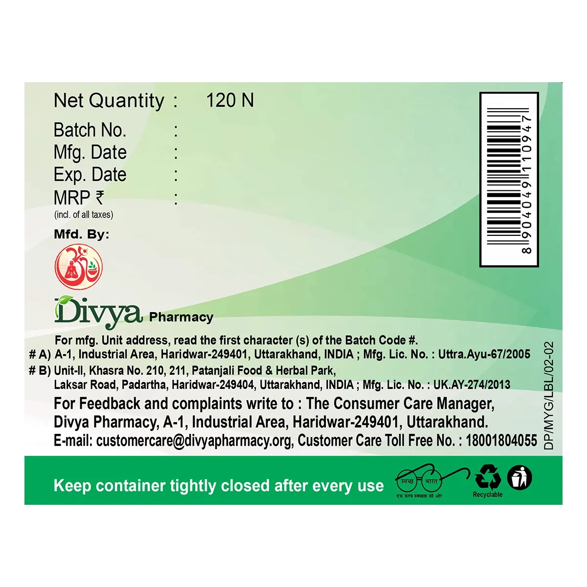 1-1 Tablet morning- evening with milk or lukewarm water or as directed by the physician.