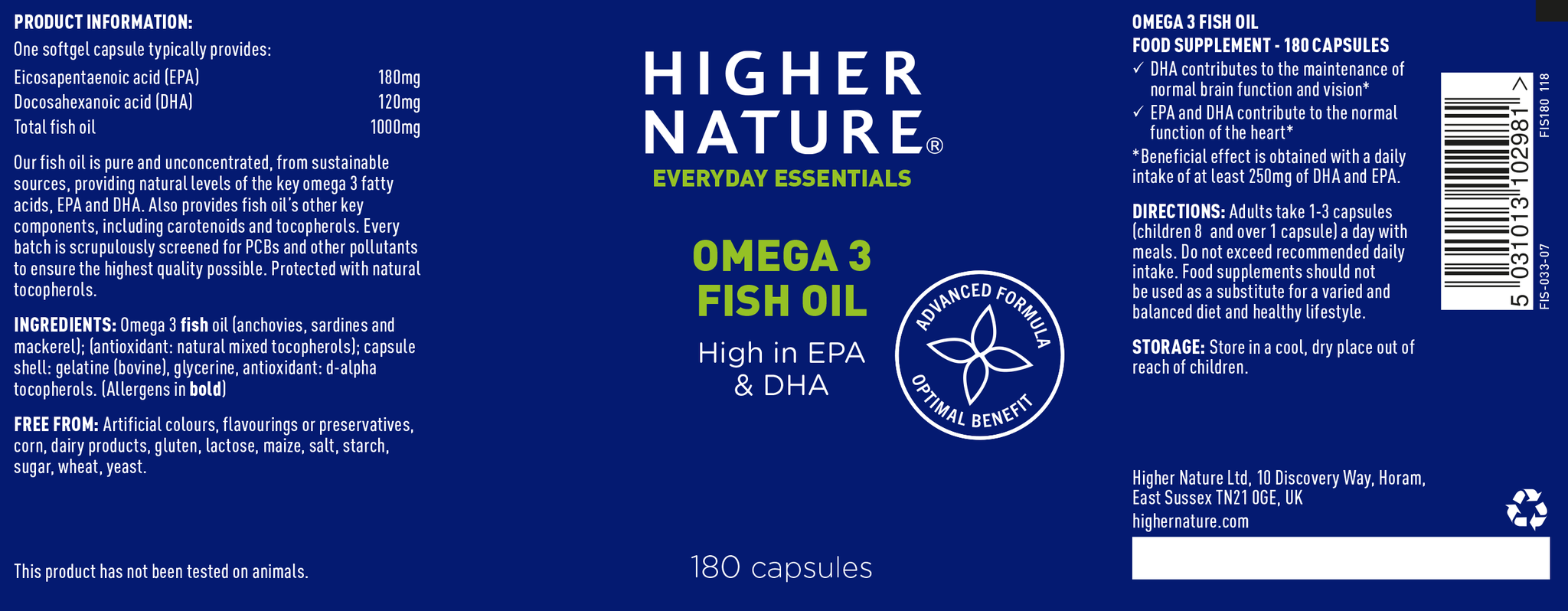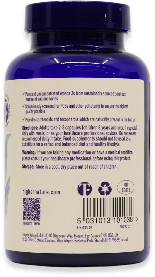 Nourish whole body health with sustainably sourced omega 3s. Delivering 600mg EPA + DHA per day from responsibly sourced sardines, mackerel and anchovies. Scrupulously screened for guaranteed quality and purity.