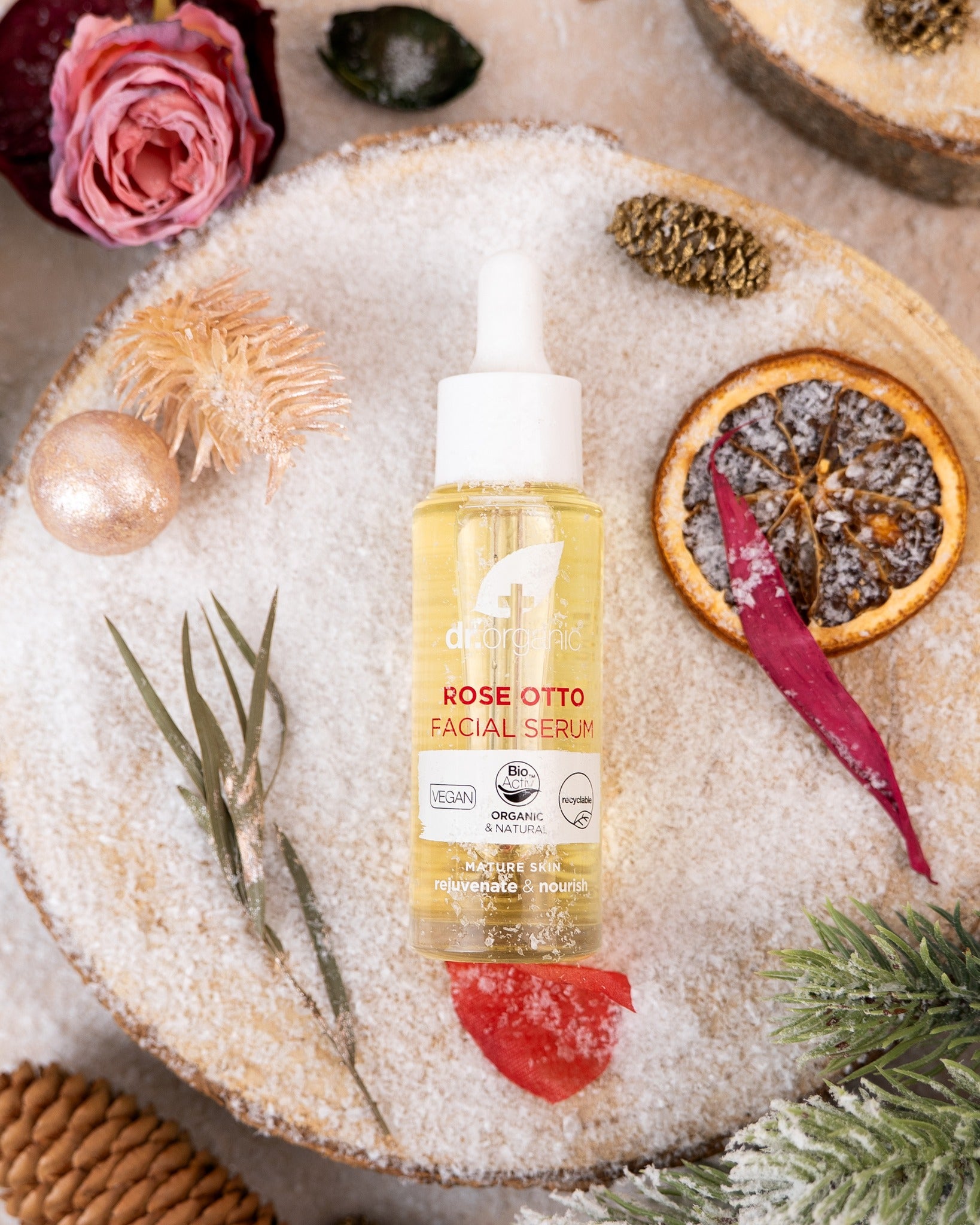Pure Organic Rose Otto Oil is an uplifting and aromatic essential oil, acclaimed through the ages for its use in natural skin and hair care. By combining this precious oil with a proprietary blend of bioactive ingredients, we have created a rejuvenating serum that nourishes and moisturises effectively, leaving the skin hydrated, refreshed and bursting with vitality.