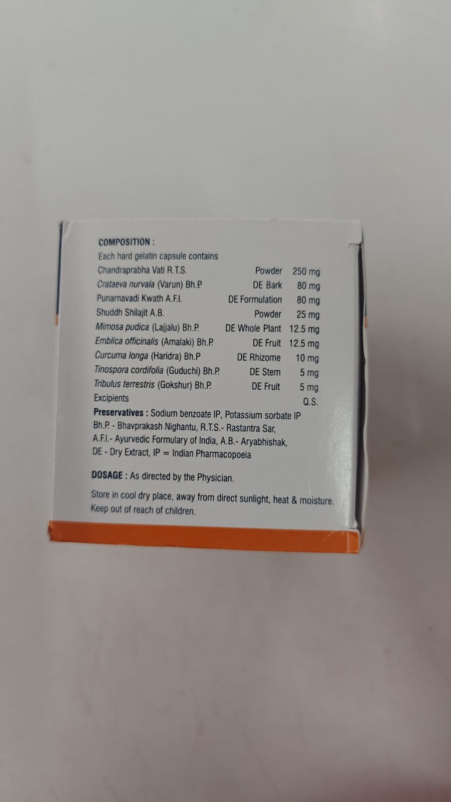 Combination of Varuna, Chandraprabha and Shilajit works for you. Varuna increases force to detroussar contraction and reduces residual urine volume. Chandraprabha acts as a powerful yet safe urinary and reproductive system vitalizer. Shilajit is a versatile normalizer of urinary, respiratory and digestive systems.
