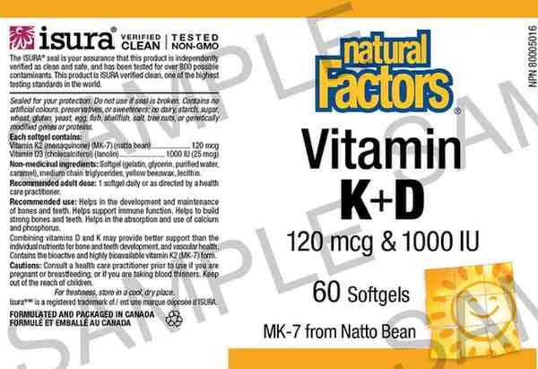 Natural Factors Vit K &D3 120 Mcg/1000iu